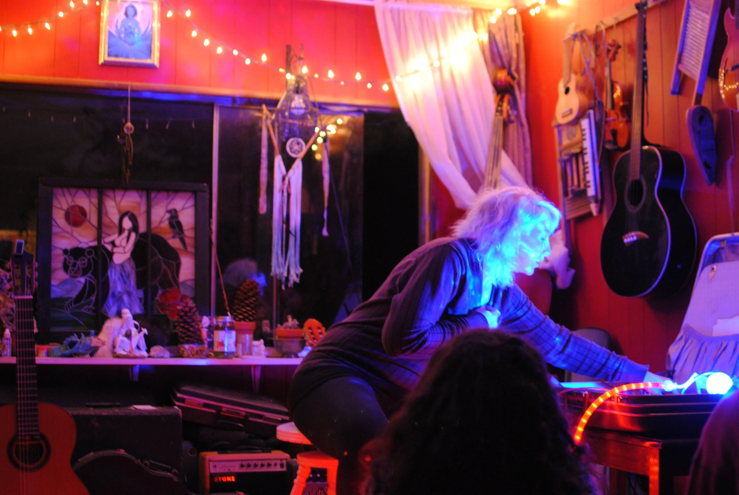 I had the pleasure of playing the most wonderful house show at OWL Hollow, an artistic living community of some truly talented and hospitable people. A fire was going all night long to warm those sitting under the stars while the rest of us huddled into a cozy living room/kitchen to hear some good music. I was happy to be one of four artist performing that night (I always prefer full bills with lots of sounds mingling).